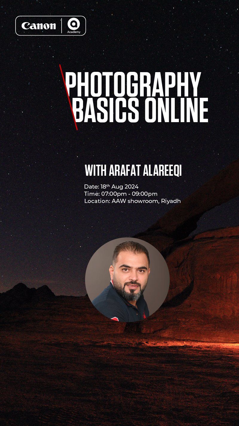 photography basics online 18th August 2024 Arafat Alareeqi Riyadh 7:00 PM – 9:00 PM