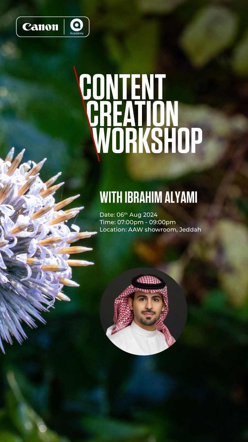 Content creation workshop 6th July 2024 Ibrahim Alyami Jeddah 7:00 PM – 9:00 PM
