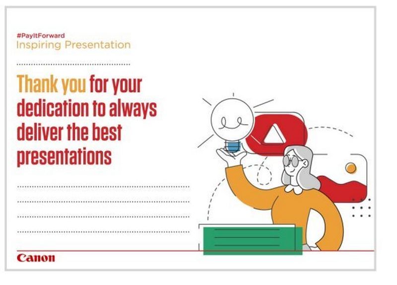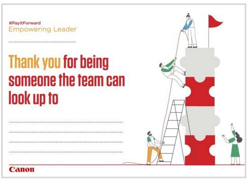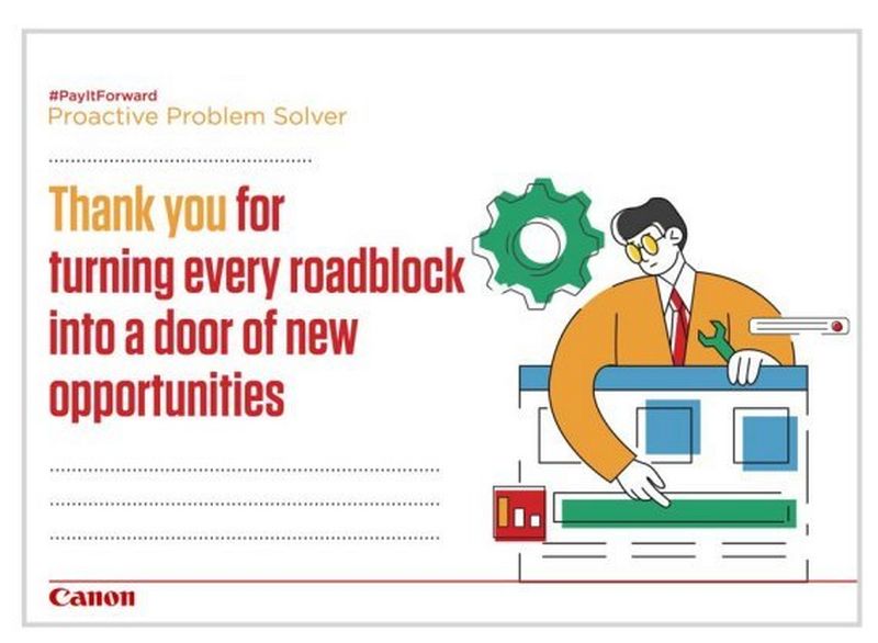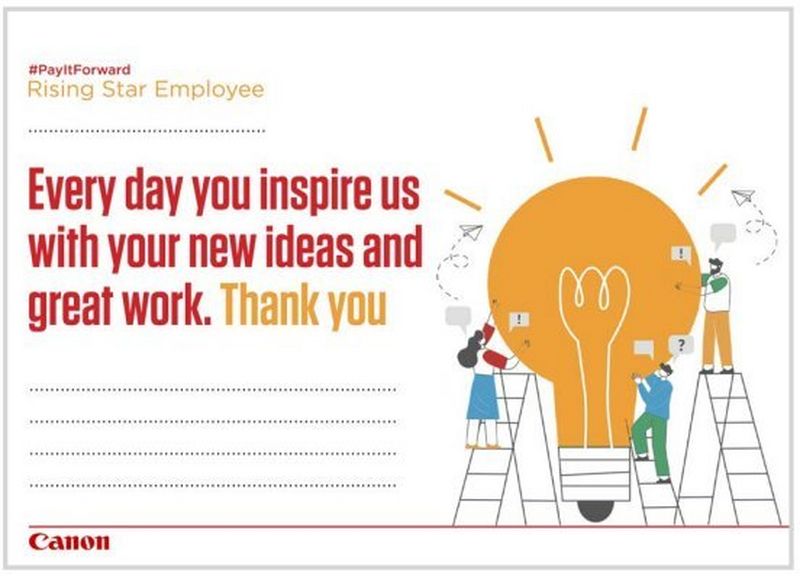 Welcome to #PAYITFORWARD, a program designed to foster gratitude and positivity within the workplace. Take the time to recognize your coworkers' achievements and embrace Canon's fundamental principles of being Bold, Innovative, and Visionary.
