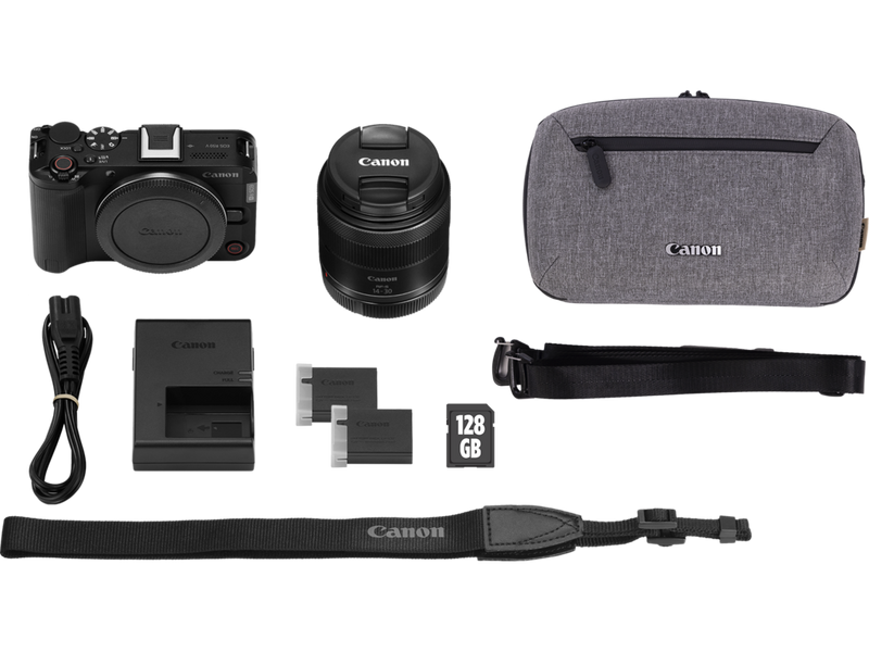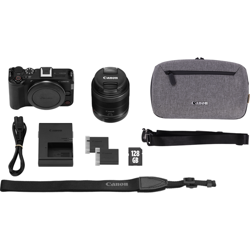 Canon EOS R50 V Mirrorless Camera + RF-S 14-30mm F4-6.3 IS STM PZ Lens + Backpack + SD Card + Spare Battery