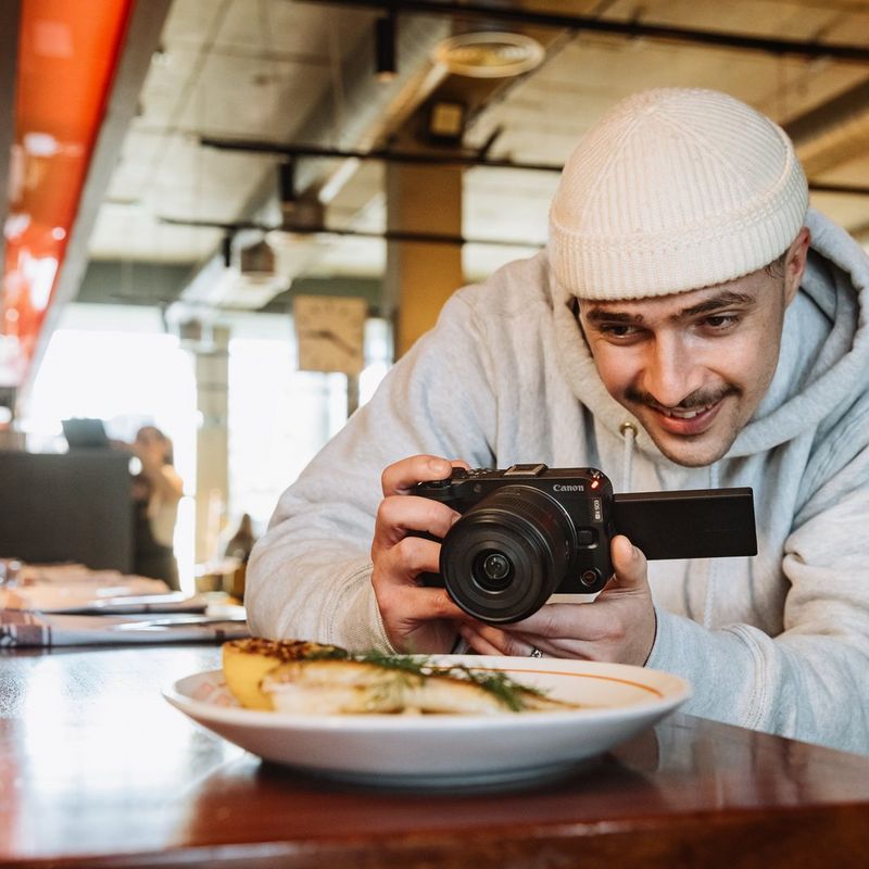 Use the vari-angle touchscreen to adjust your settings, and the front-facing record button to start filming. Plus, you can rely on subject detection autofocus to stay sharp on screen. The Canon EOS R50 V is built to be a social media camera, with a dedicated tripod mount for easy vertical shooting, and Movie IS to reduce camera shake.