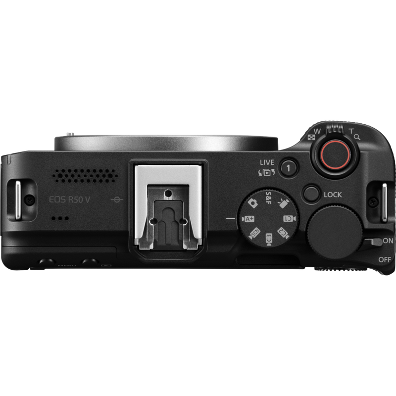 Built for creators, the Canon EOS R50 V is an interchangeable lens video camera with powerful filmmaking features like 4K 60p recording¹, Canon Log 3, and custom colour profiles. The vari-angle touchscreen and front-facing record button make solo shooting effortless, while intelligent autofocus keeps subjects sharp. Custom picture styles let you refine your aesthetic, and advanced audio controls ensure clear, high-quality sound. The Canon EOS R50 V is an ideal video camera for content creation, whether you're livestreaming, creating cinematic shorts, or producing scroll-stopping social content. It offers creative control and versatility to elevate your storytelling.