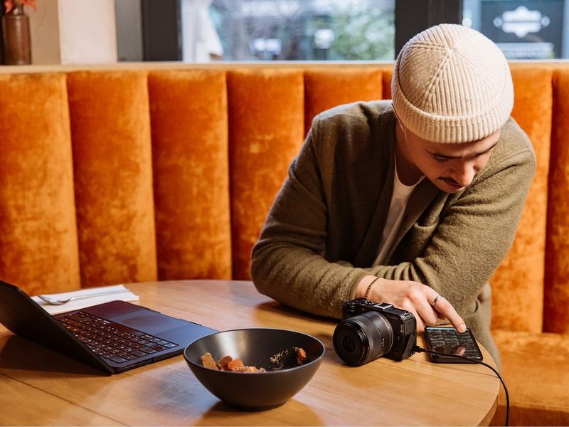 Never worry about battery life interrupting your creative flow. The Canon EOS R50 V auto-transfers your files while charging, so you can back up your footage even while the camera is off.