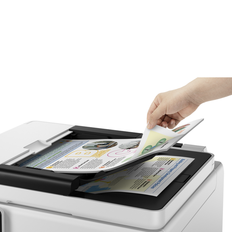 Compact in size but heavy in features, enjoy a 50-sheet auto document feeder, a user-friendly tiltable 6.9cm colour touchscreen and a paper supply of up to 600 sheets