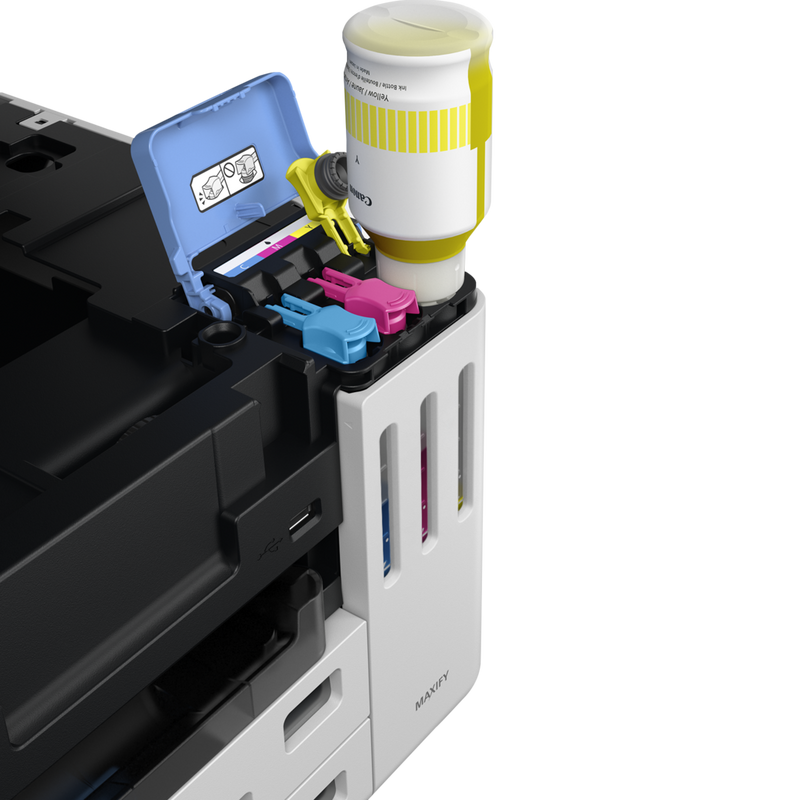 Get support¹Page yield of ink bottle used for initial setup is lower than a replacement as a certain amount of ink is used to fill the print head during setup. Page yield is the estimated value based on Canon's individual test method using the ISO/IEC 24712 colour chart and continuous printing simulation with the replacement ink bottles after initial setup.<br>Black and colour page yields are not to be combined.<br>Page yield varies significantly depending on contents printed and other factors.